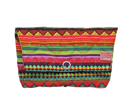 Modèle Mattia en tissu coton imprimé multicolore géométrique, au style inca