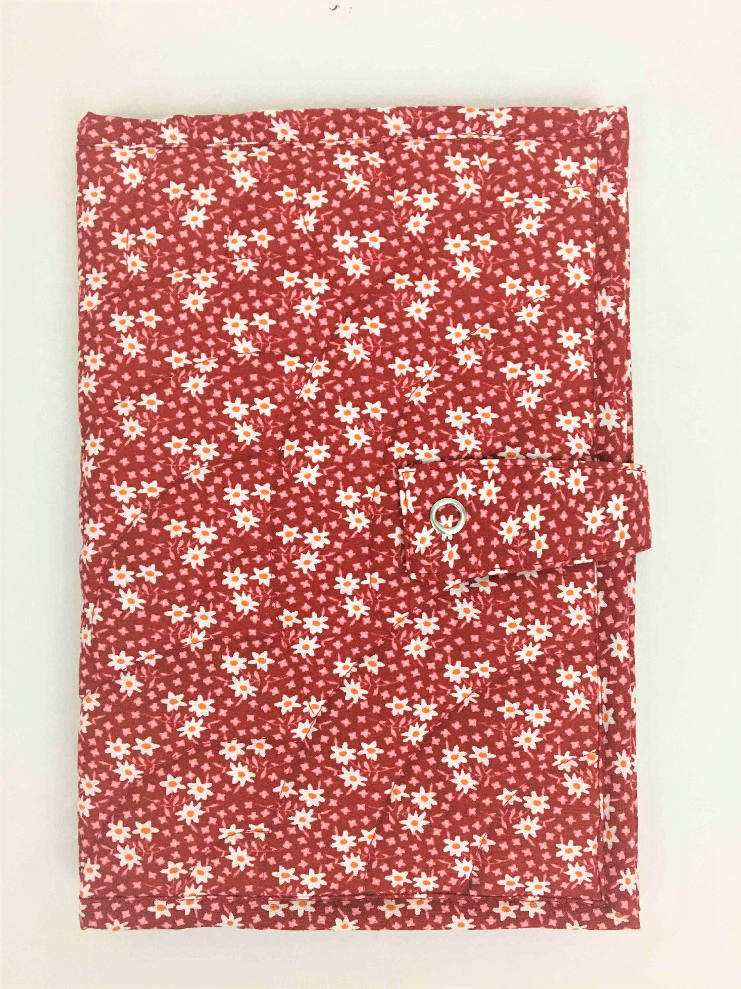 Élastique central qui maintient le livre ou le carnet bien en place. Fermeture avec patte de boutonnage et pression