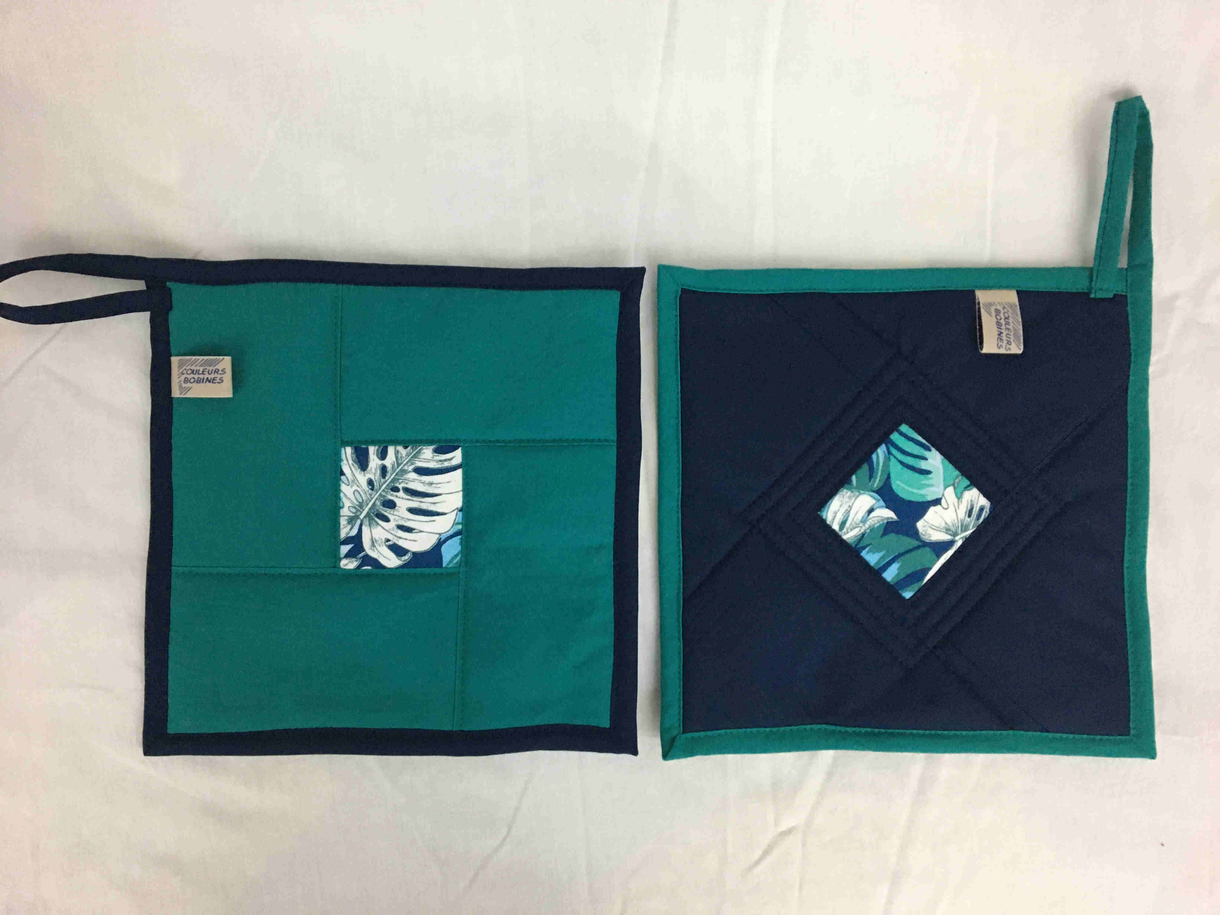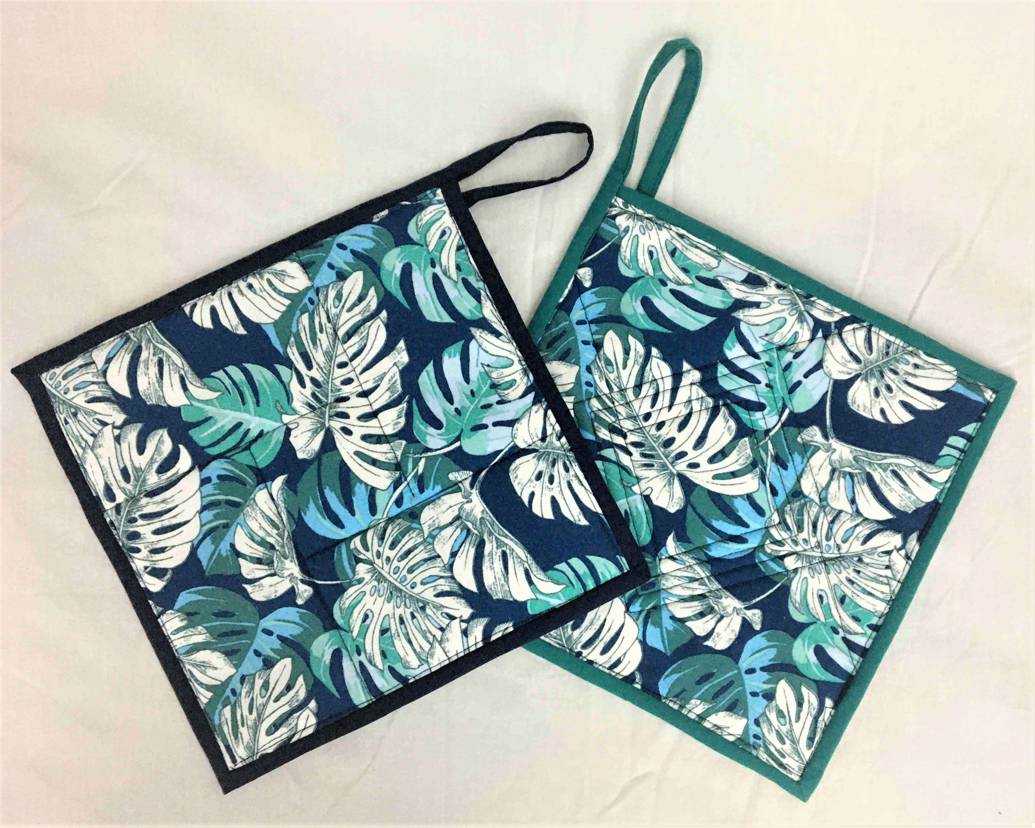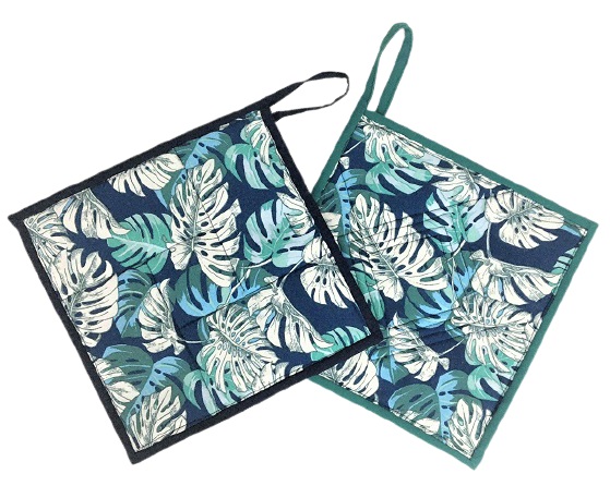 Maniques en tissu coton imprimé grandes feuilles blanches