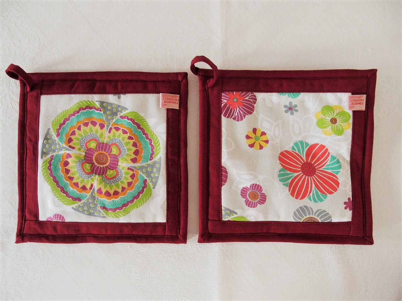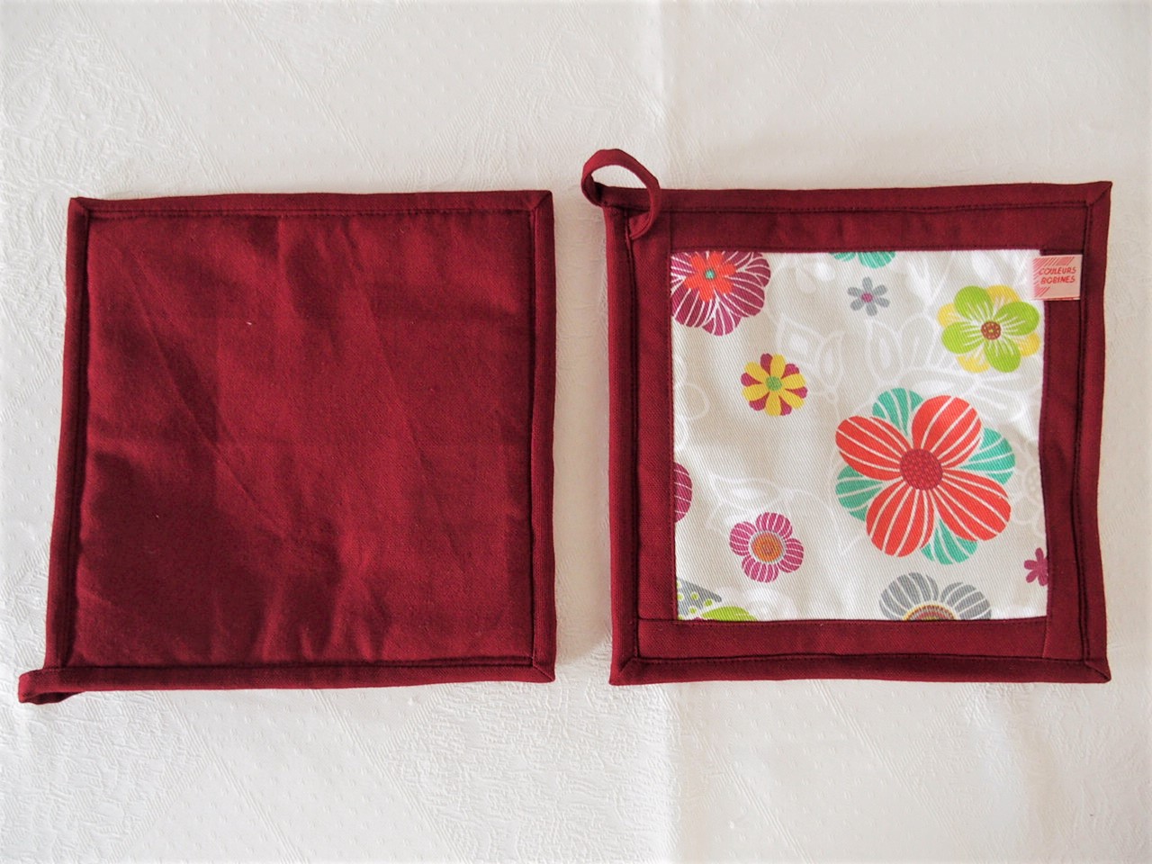 Maniques en tissu coton imprimé à fleurs.