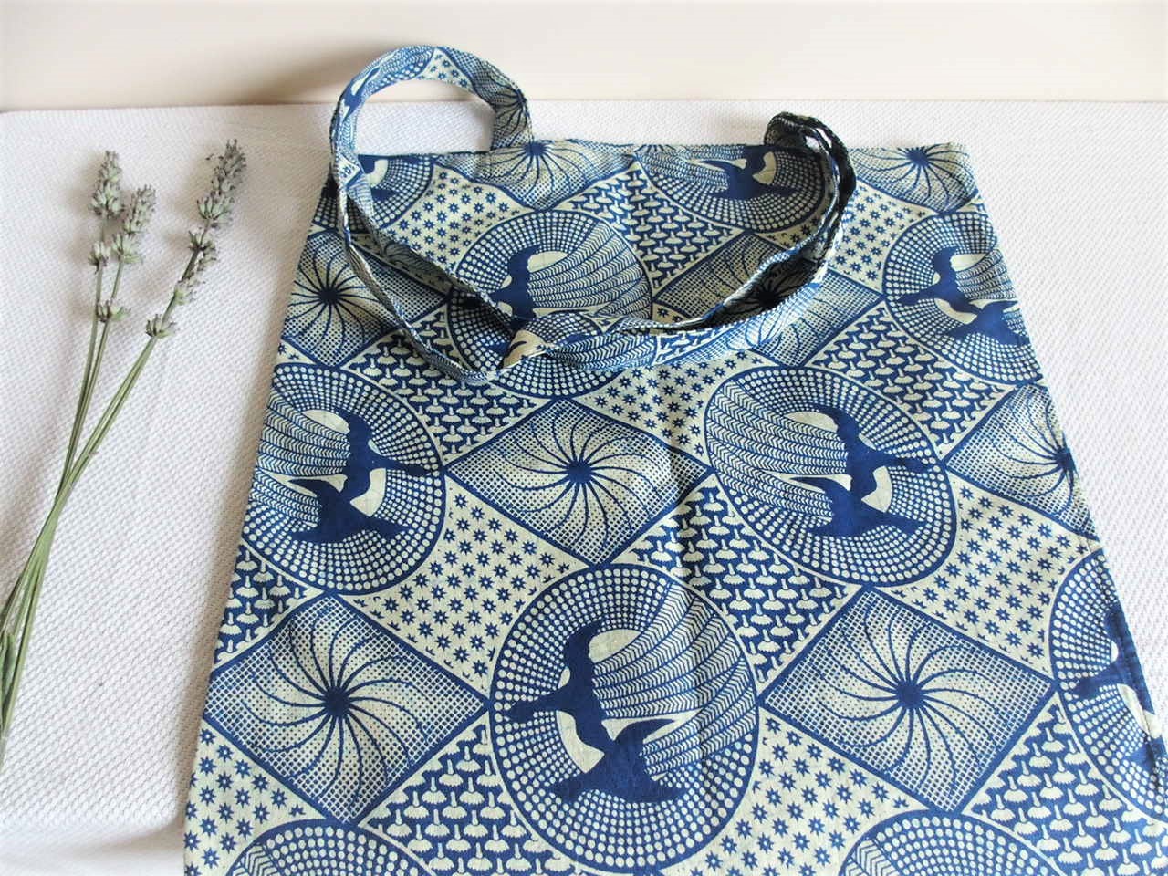 Ce tote bag aux dimensions classiques se distinguera des autres par sa toile en Wax original