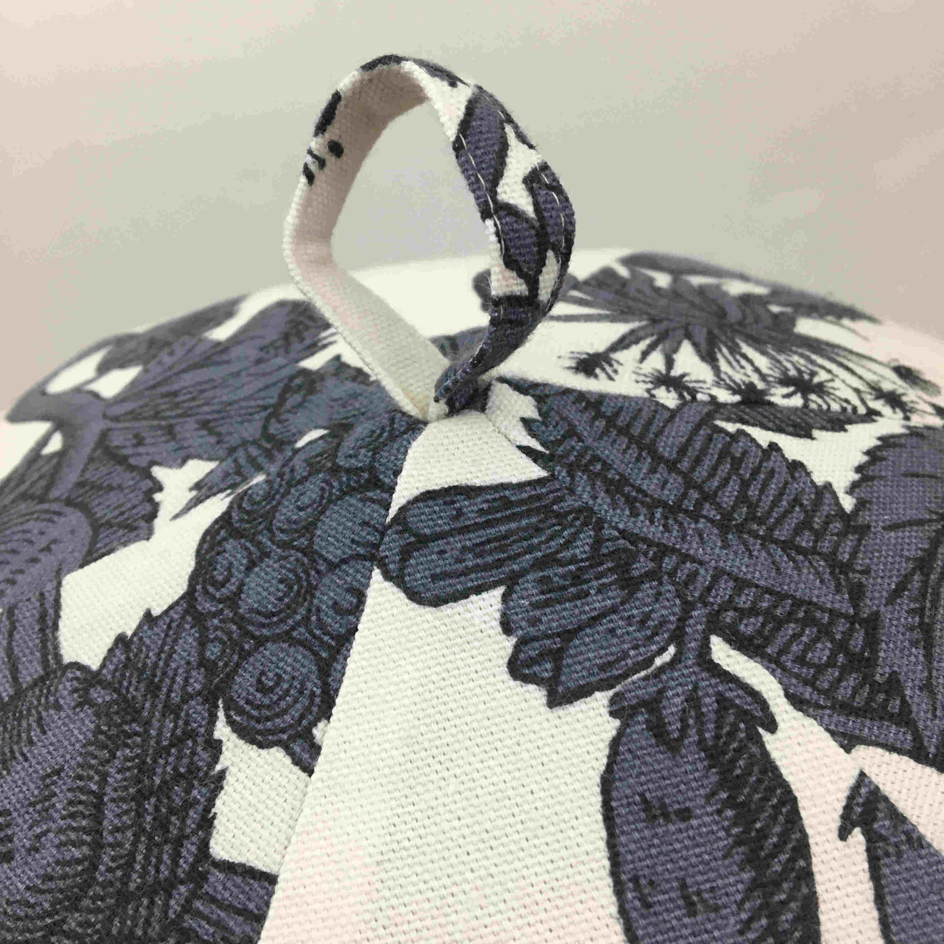 Housse en toile coton écru, motifs grosses fleurs et fruits couleurs gris foncé, déhoussable et lavable