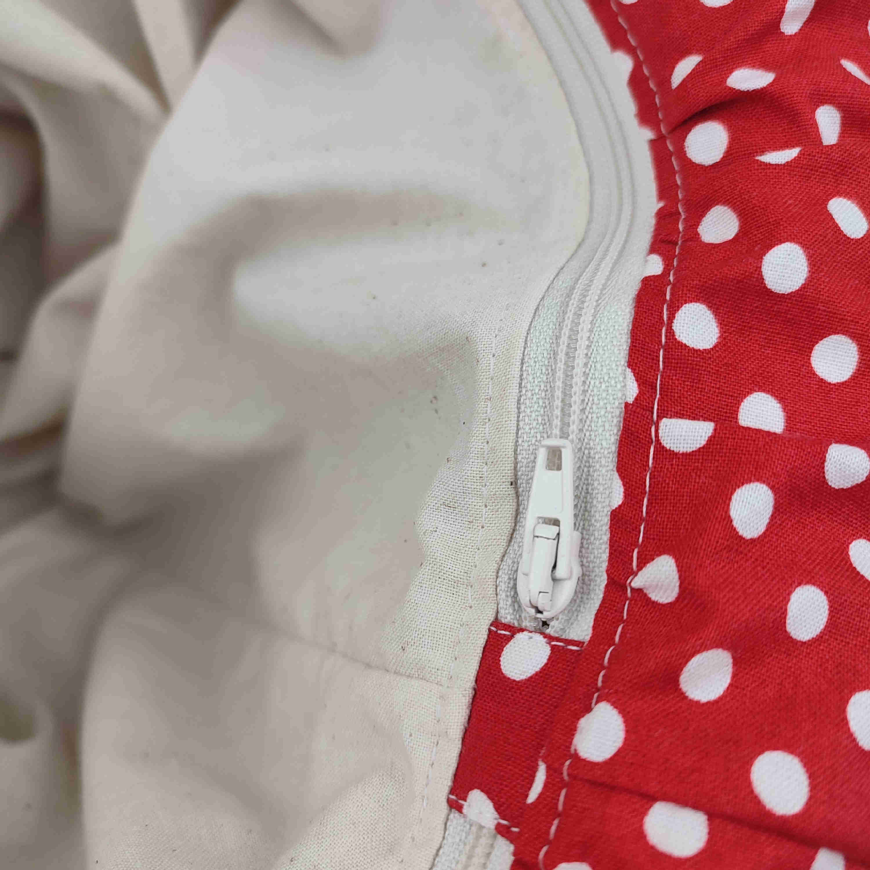 Housse décorative en tissu coton rouge à gros pois blanc (6mm de diamètre) , déhoussable et lavable